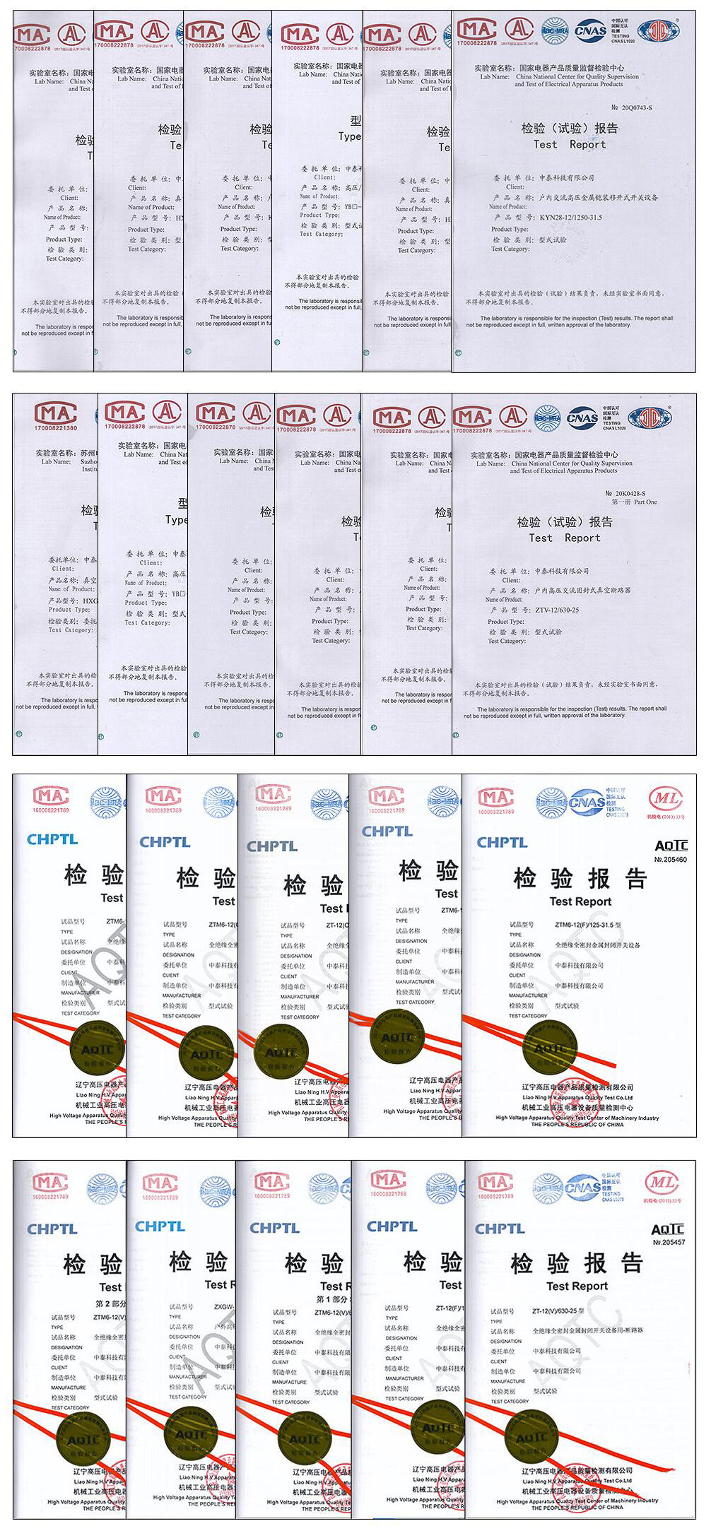 2020年05月24日,我司先后經(jīng)過**電器產(chǎn)品質(zhì)量監(jiān)督檢驗中心、遼寧高壓電器產(chǎn)品質(zhì)量檢測有限公司等機構(gòu)的檢驗,我司產(chǎn)品符合質(zhì)量要求,順利取得高壓產(chǎn)品檢驗報告證書。